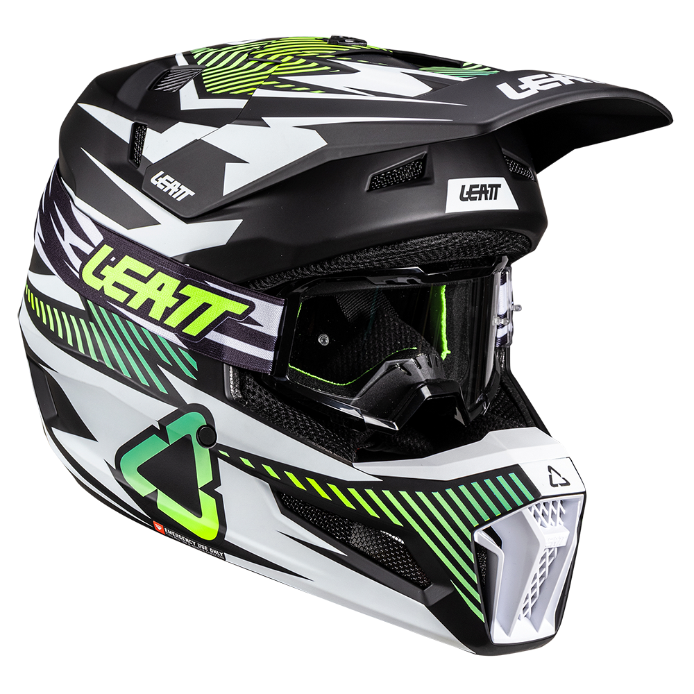 This kit is made up of the Moto 3.5 helmet and Vizion 3.5 goggles. The helmet and goggle kit set is unique to Leatt, with both products contributing to incredible head, brain, and eye protection.